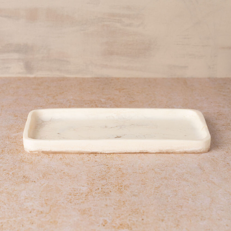 The Flow Resin Caddy / Tray in Marshmallow is distinctive and organic with its curved lines and marble finish. Each piece is handmade and no two patterns are the same.