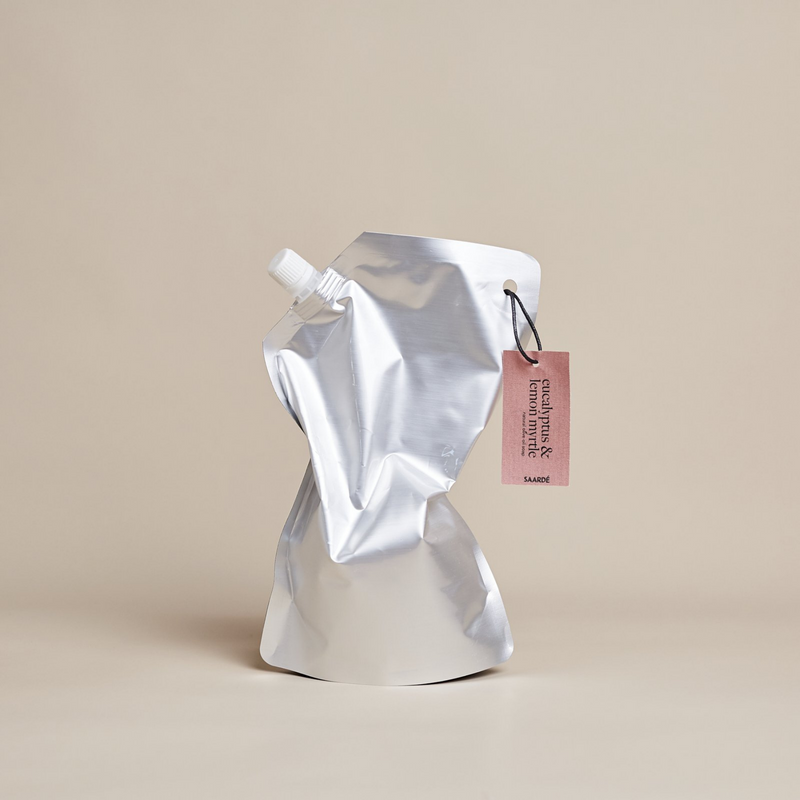 A squeeze style pour pouch containing approximately 2.5 refills of the 300ml Glass Bottles.