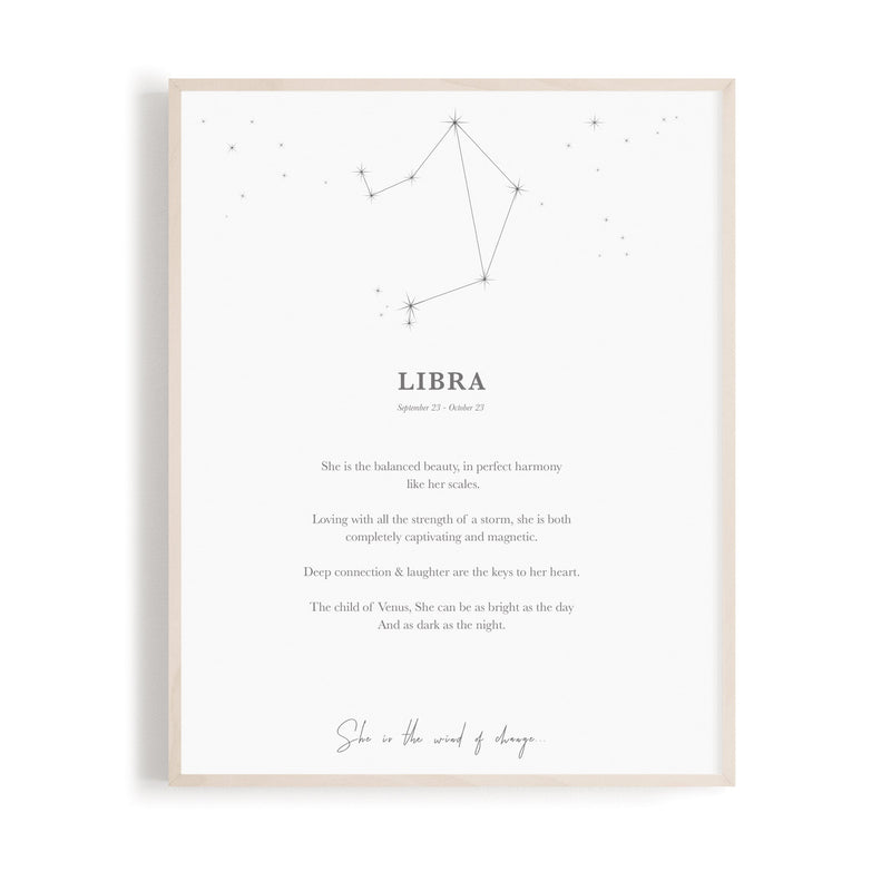 Zodiac signs are printed on a 297 x 210mm / A4 stock. Frame not included