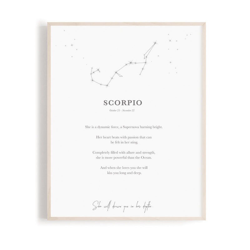 Zodiac signs are printed on a 297 x 210mm / A4 stock. Frame not included