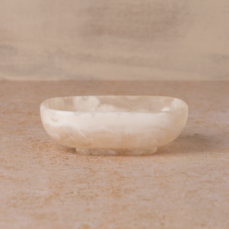 The Flow Resin Soap Dish in Peach Blush is distinctive and organic with its curved lines and marble finish. Each soap dish is handmade and no two patterns are the same.