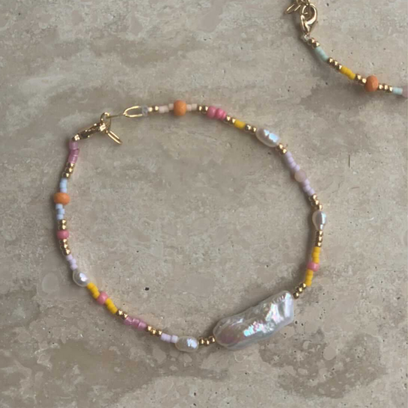 Featuring a divine Keshi Pearl surrounded by pastel beads, Frida was inspired by conversations had with the makers daughter - just.remy wanted to create something that reflects a mix of strength and softness, of a beauty through uniqueness!
