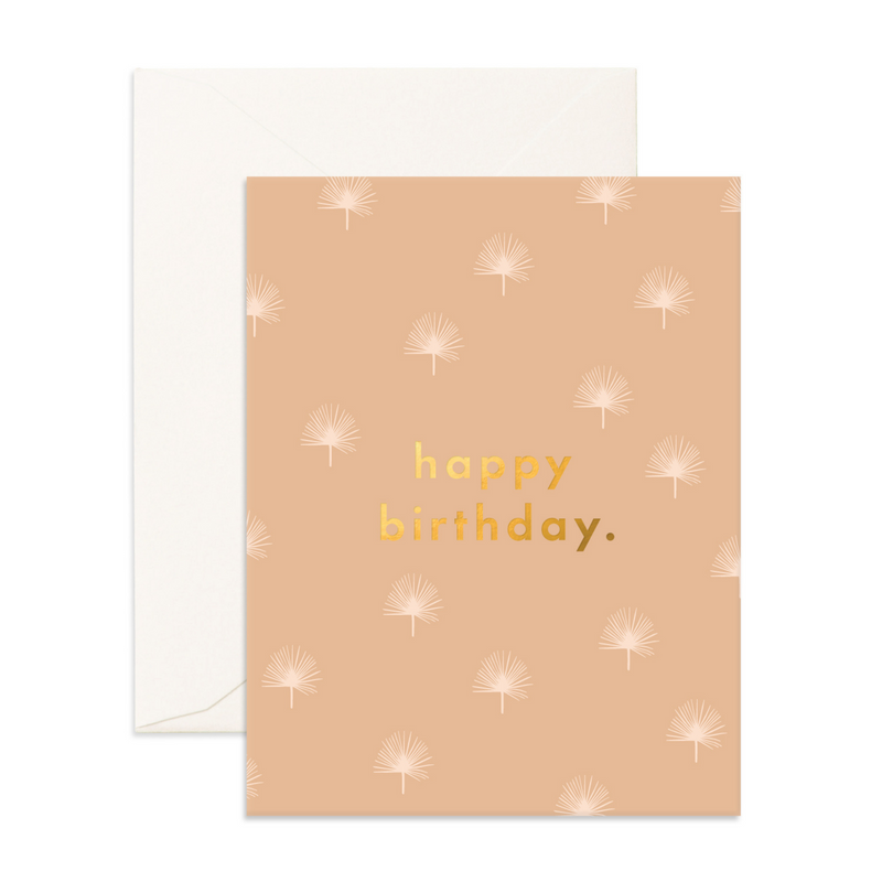 Material: Warm White Uncoated Card Stock. Process. Full colour + Foil Stamp. Features: Blank Interior. Foil: Gold Metallic Foil. Envelope: Cream. Origin: Made in Australia.
