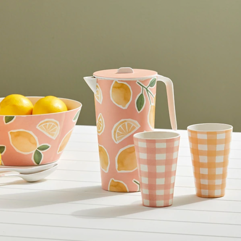 Show your 'zest' for entertaining with the Verna Bamboo Fibre Jug. Featuring a fun lemon design.